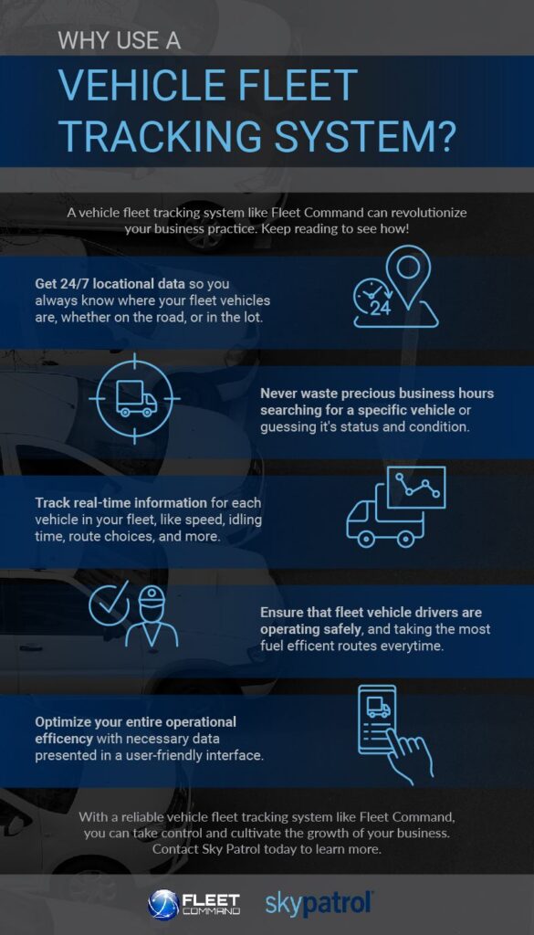 That’s where the Fleet Command software and hardware from Sky Patrol comes in. With this incredible software, now you can be instantly notified of the location and status of every vehicle in your fleet, whenever you need it. Instead of desperately hoping for the best, you can take control of your inventory and have the locational information you need to keep your vehicle fleet in your control, and operating at peak performance. A vehicle fleet tracking system like Fleet Command offers the technological innovation and control that will ensure you will never lose track or mismanage any vehicle in your fleet ever again.